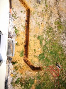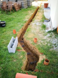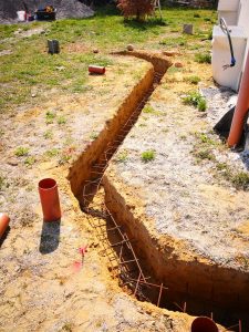 Nachdem nun der Aushub in der richtigen Tiefe ausgeführt war, konnten die Eisen wieder zurück an ihren Platz.