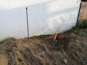 Diese beiden Leitungen galt es, einmal quer durch den Garten an das südliche Ende zu verlegen.