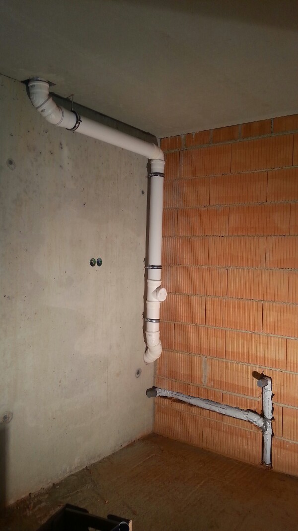 Neben den Spühlkästen für die Toiletten, installierten sie die Rohrleitungen für das Abwasser sowie die ersten Frischwasserzuleitungen.