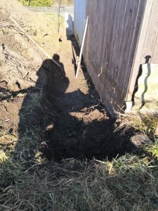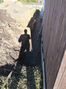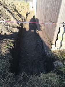 Da hier aber noch einiges an Material und auch Erdhäufen im Weg waren, buddelte ich den Graben kurzer Hand, von Hand aus.
