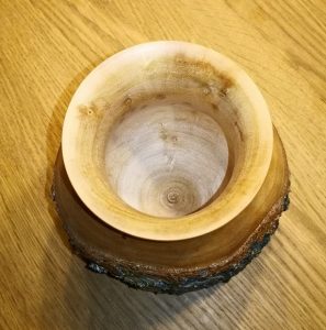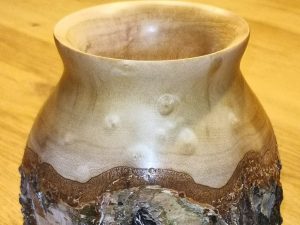 Da lag glücklicher Weise noch ein schönes Stück Birke rum, das mir kürzlich ein Arbeitskollege überlassen hatte… Und ja, was soll ich sagen, nach kurzer Beschnupperung tat das Werkzeug dann auch das was es soll und es entstand eine nette Birkenvase.