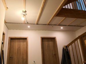 Nachdem es zur Zeit gerade nicht all zu angenehm ist draußen zu arbeiten und in unserem Partykeller noch einiges an Material, wie noch zu verlegende Fußboden-Randleisten, Deckenrandleisten sowie Paneele für den Kellergang liegen, machte ich mich an unsere vorerst letzte Holzdecke.