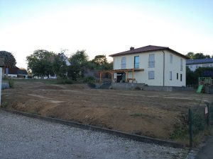 Bis zum Abend waren die Humushaufen verteilt und unser zukünftiger Garten halbwegs eben.